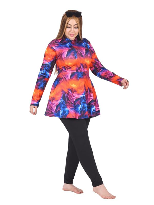 GAMAL SONS FOR ABAYA - مايوه سباحة محتشم للنساء – تصميم فستان بألوان نارية جذابة مع بنطلون GAMAL SONS FOR ABAYA GS-074-51060-Parent