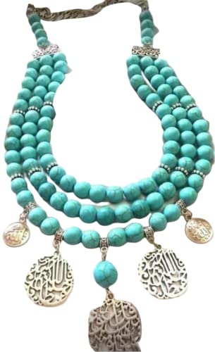 Generic - عقد طبيعي متعدد الصفوف للنساء (فضي، تركواز)