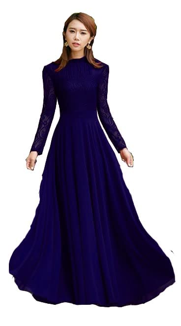 Generic - فستان نسائى كحلى دانتيل و شيفون ببطانة