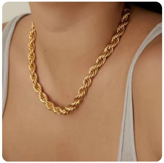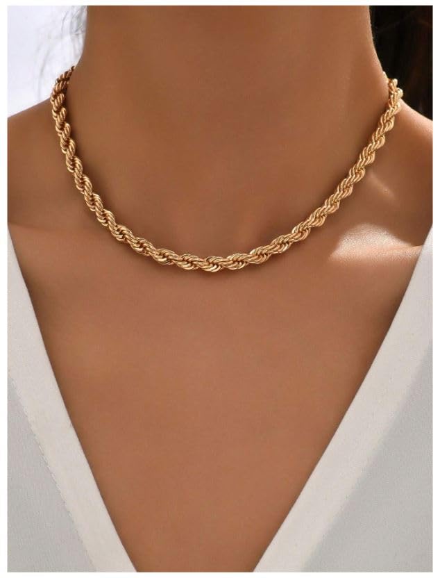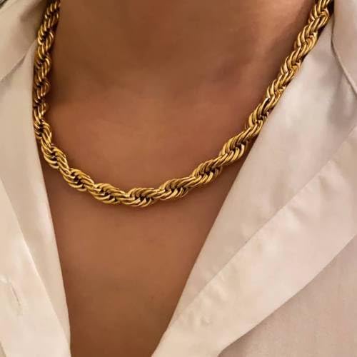 Generic - قلادة نسائية من الستانلس ستيل المطلي بالذهب وسميك ومضفر عصرية لعيد الميلاد للزوجة والابنة توب تريند