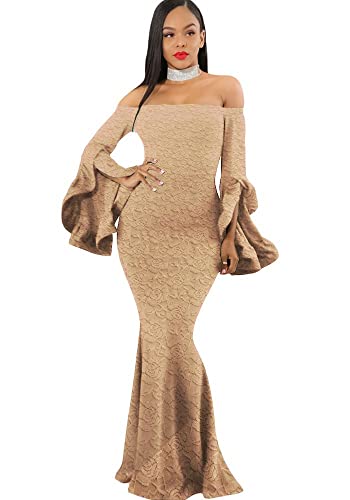 Generic - فستان نسائى دانتيل ببطانة طويل دون اكتاف