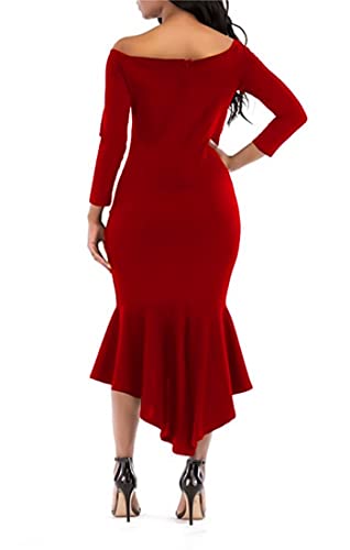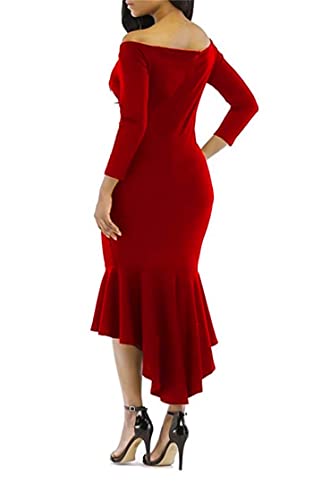 Generic - فستان نسائى طويل احمر دون اكتاف