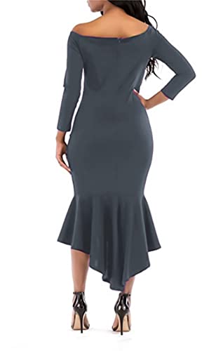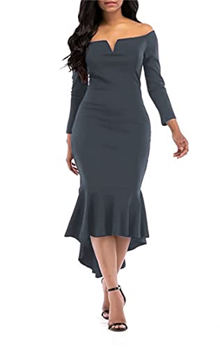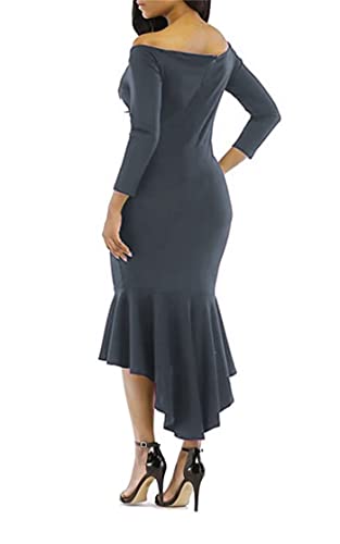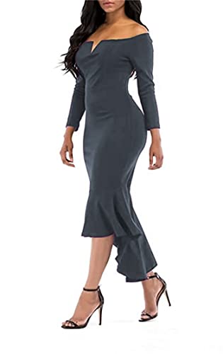 Generic - فستان نسائى طويل رصاصي دون اكتاف