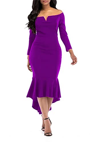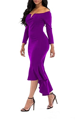Generic - فستان نسائى طويل بنفسجي دون اكتاف