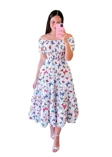 Generic - فستان صيفي طويل مكشوف الكتفين للنساء, أبيض, One Size