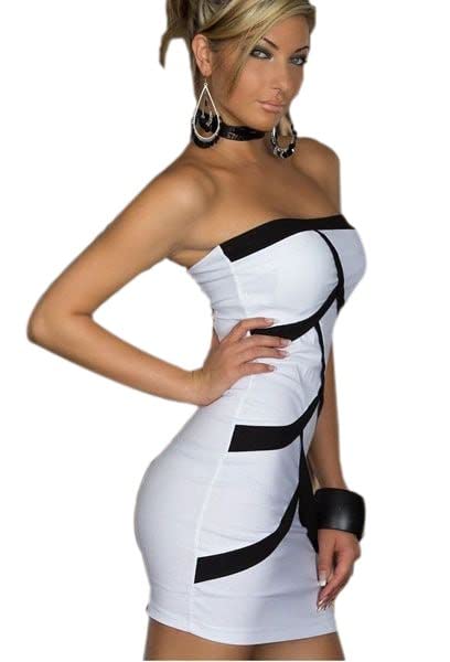 Generic - فستان قصير مكشوف الكتفين للنساء - ابيض/اسود