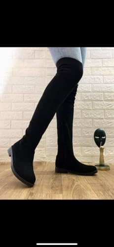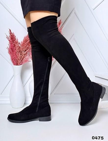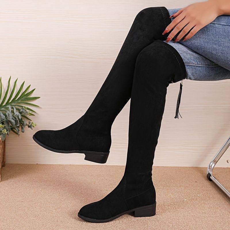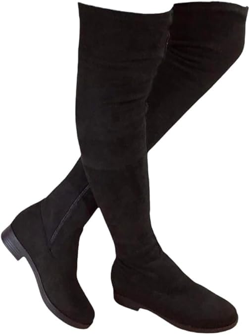 Generic - حذاء نسائي طويل فوق الركبة، أسود، كعب منخفض، مادة شامواه - موديل رقم #: 613B