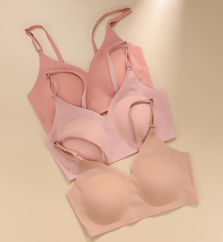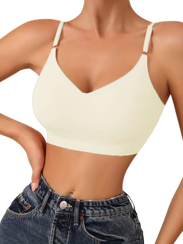 Generic - حمالة صدر بقالب مرن مبطنة سادة مريحة بدون خياطة وبدون سلك مع حمالات قابلة للإزالة