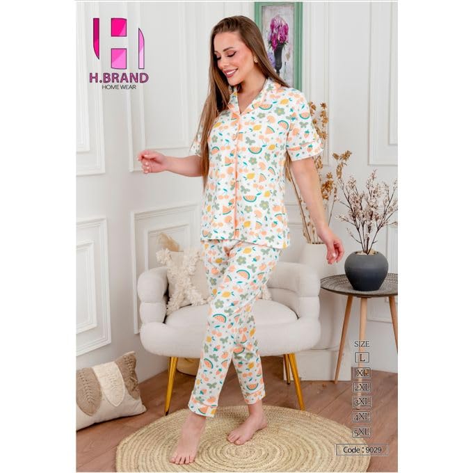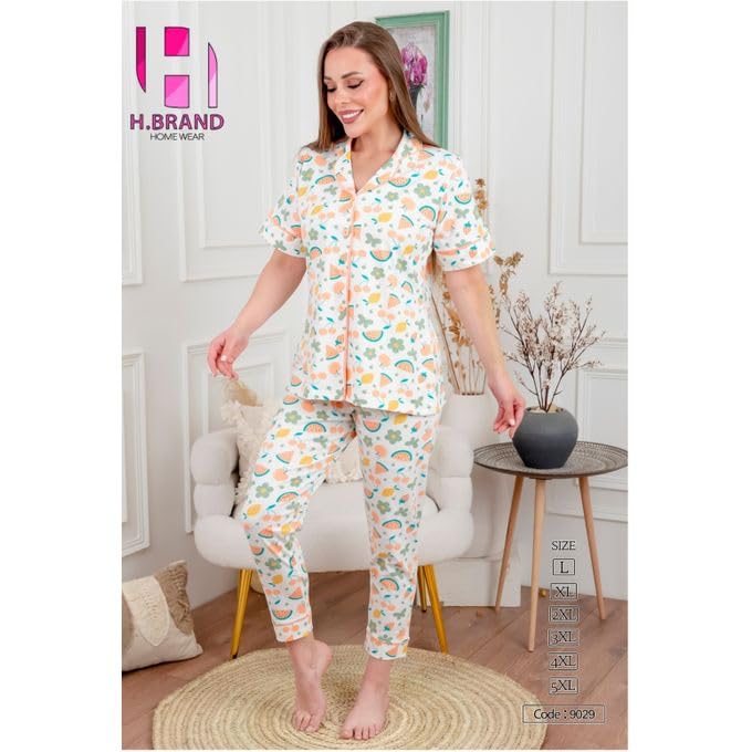 Generic - بيجامة حريمي وبيج سايز بنطلون قطن صيفي 2024