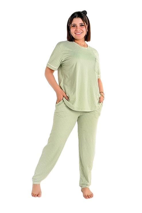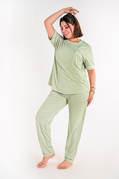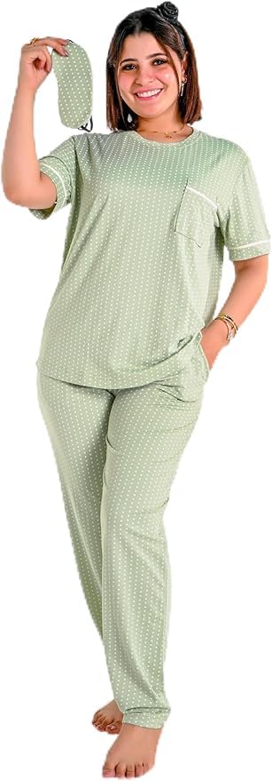 Generic - بيجامة حريمي مكونة من بنطلون وتيشيرت – ترينج نسائي عصري بخامة ناعمة ومريحة للنوم والاسترخاء داخل المنزل، تصميم أنيق متوفر يناسب جميع الأذواق- مع نظارة نوم
