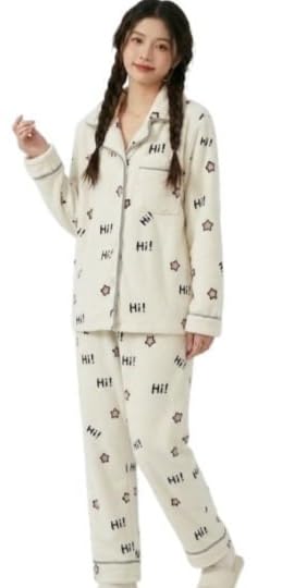 Generic - طقم بيجامة للنساء، لون كريمي، بلوزة باكمام طويلة بازرار وسروال، ملابس نوم مريحة، مقاس واحد يصل الى 70 كجم