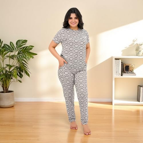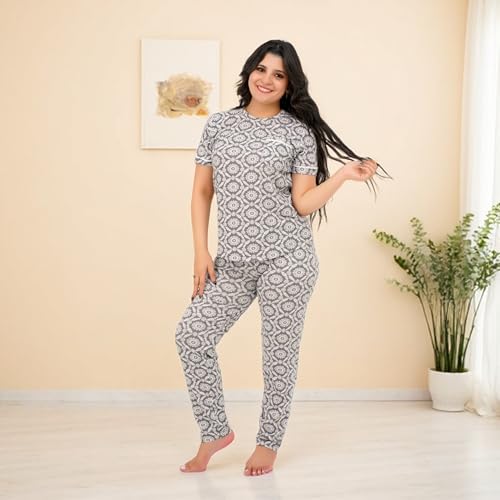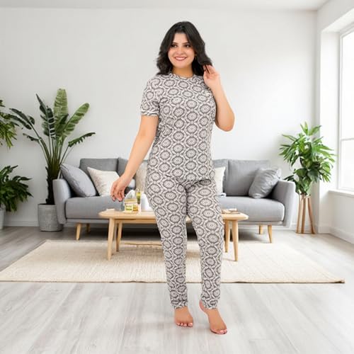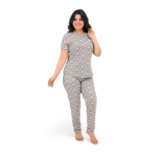 Generic - طقم بيجامة حريمي - بيجامة للنساء صيفي - طقم 2 قطعة بنطلون وتيشيرت - منقوش بأشكال مختلفة ومصممة خصيصا لتوفير الراحة في النوم