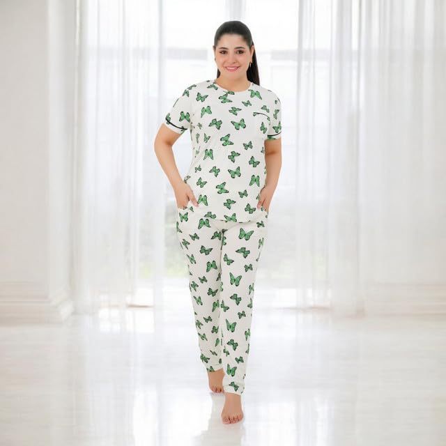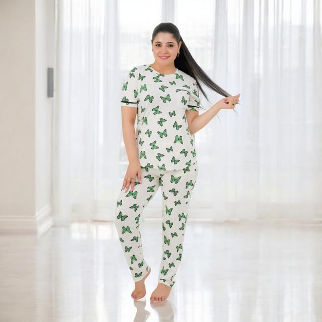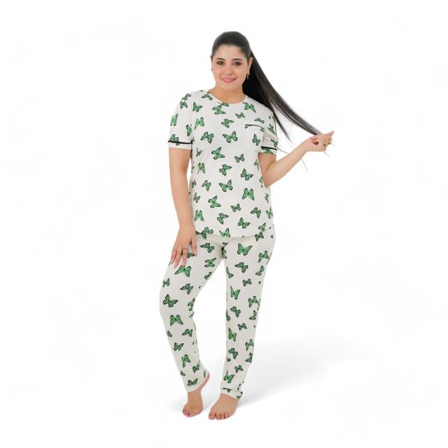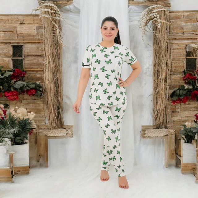 Generic - طقم بيجامة حريمي - بيجامة للنساء صيفي - طقم 2 قطعة بنطلون وتيشيرت - منقوش بروسومات مختلفة ومصممة خصيصا لتوفير الراحة والانتعاش في النوم كود 7087-G