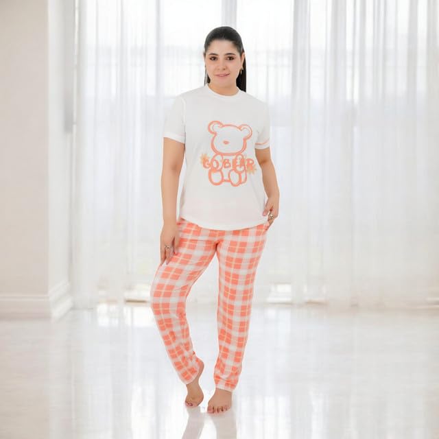 Generic - طقم بيجامة حريمي - بيجامة للنساء صيفي - طقم 2 قطعة بنطلون وتيشيرت - منقوش بروسومات مختلفة ومصممة خصيصا لتوفير الراحة والانتعاش في النوم كود 7094