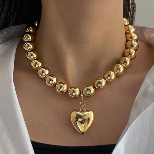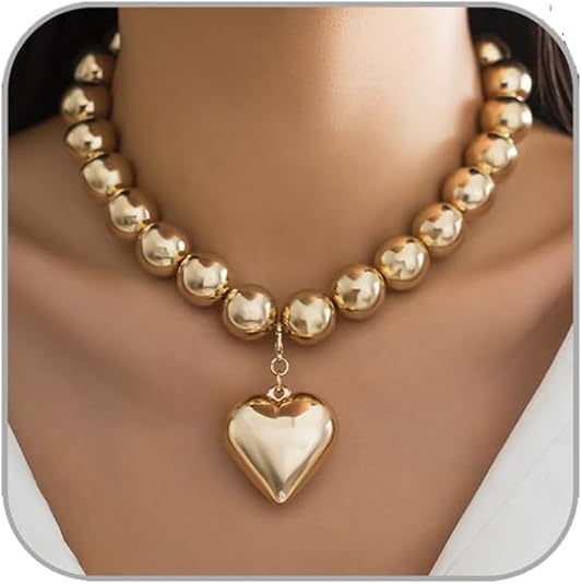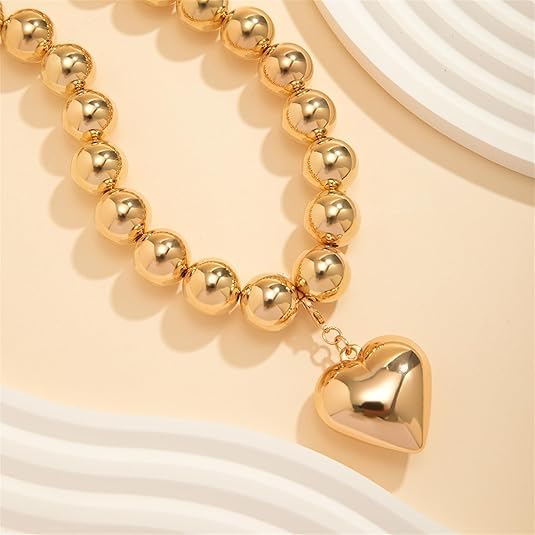 Generic - عقد لؤلؤ للنساء مع قلادة على شكل قلب، عقد لؤلؤ كبير، عقد من الخرز الكريستالي الصناعي، قلادات لهدايا مجوهرات التخرج