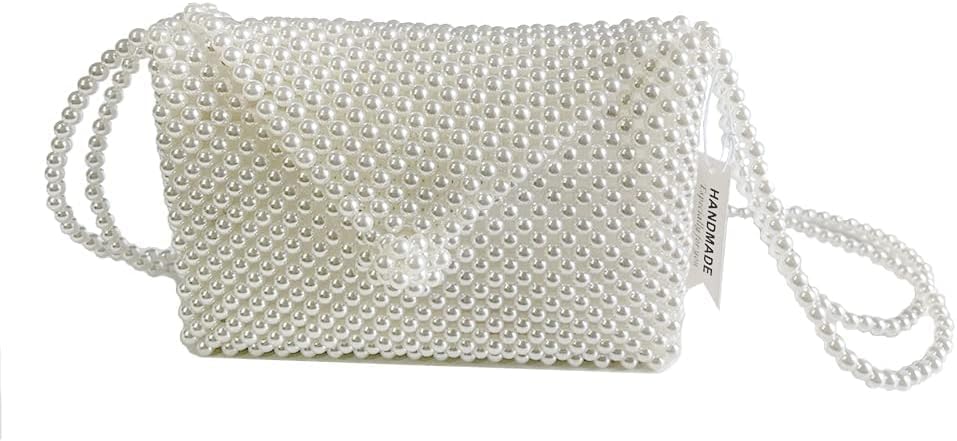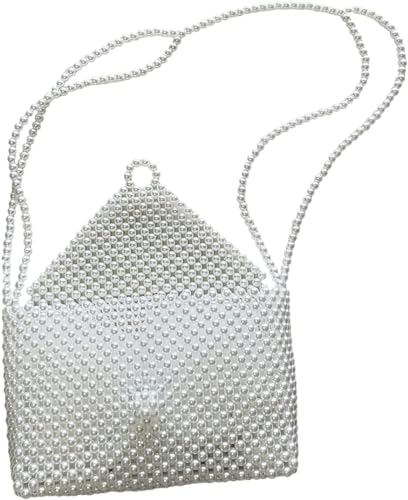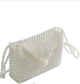 Generic - شنطة كتف نسائية مزينة باللؤلؤ بالكريستال النبيل يد صغيرة لحفلات الزفاف مع سلسلة من اللؤلؤ ابيض لؤلؤي