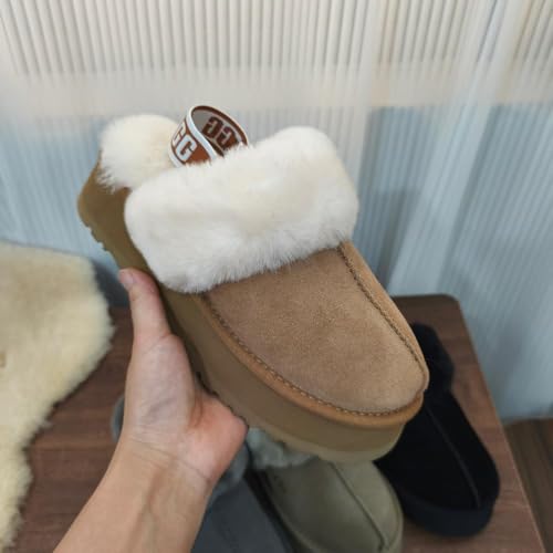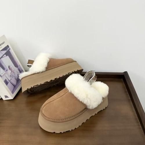Generic - صندل بكعب عالي وحزام خلفي للنساء - زخرفة انيقة من الفرو الصناعي بلون بيج داكن، نعل عريض عريض للازياء الكاجوال والراحة والأناقة في الاحذية الصيفية (لون بيج، مقاس 38)