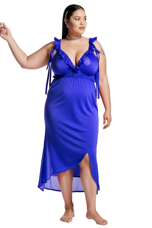 GAMAL SONS FOR ABAYA - فستان نسائي مثير انيق بدون اكمام مكشكش على شكل حرف V من جمال صنز للعبايات GS-00553-50956-ازرق