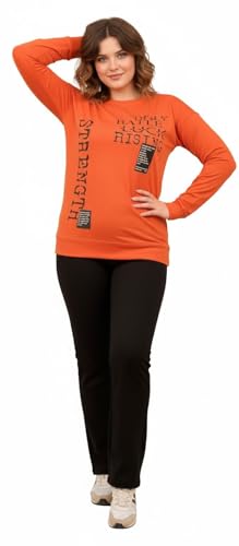Tony Tex - بلوزة رياضية نسائية مقاس كبير، لون برتقالي، أكمام طويلة مع طباعة نصية
