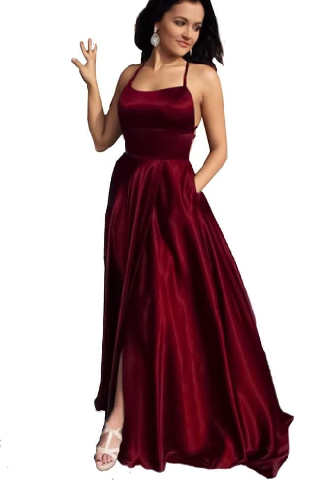 Generic - فستان نسائى قطيفة عارى من الخلف لون نبيتي