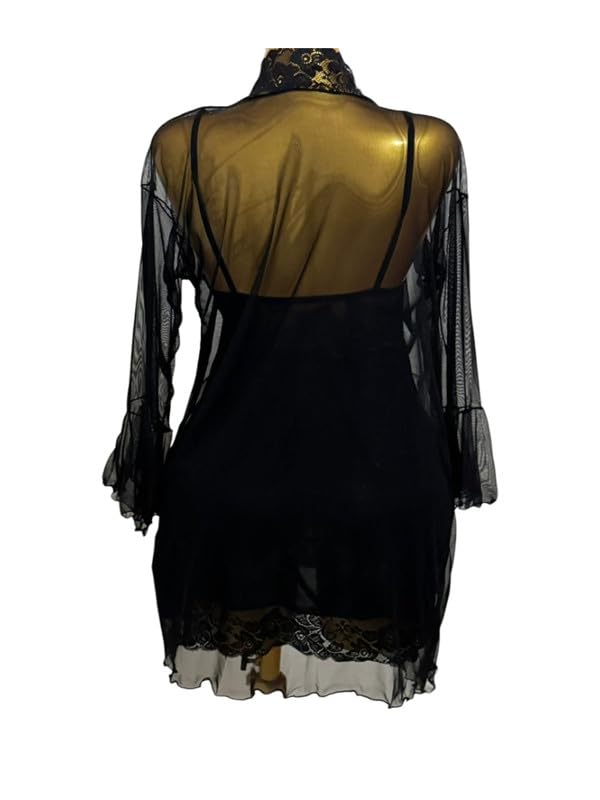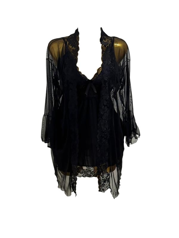 Generic - قميص لانجري باور نت وليكرا دانتيل مع روب للنساء، مقاس واحد 50-90 كجم