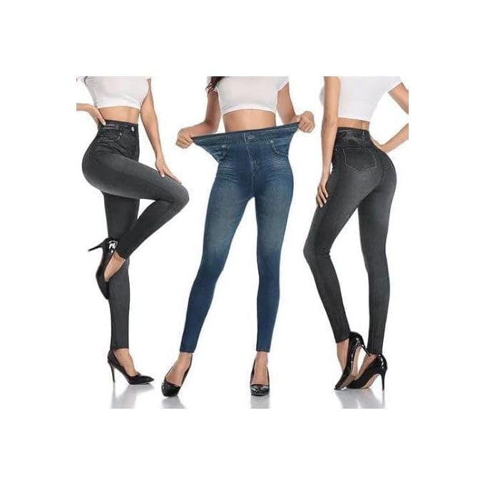Generic - ليجنز بطبعة جينز، أزرق، بتصميم ضيق ومريح للنساء