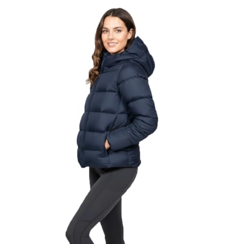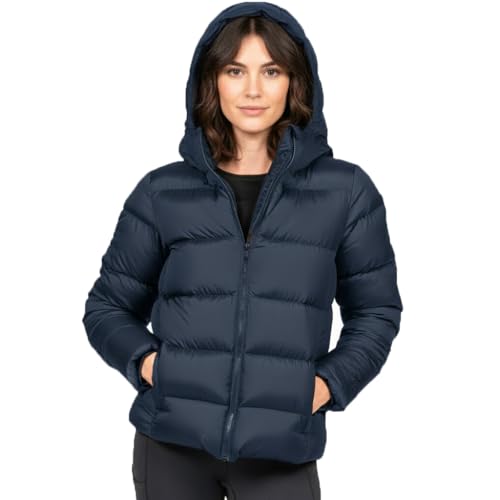 Generic - جاكيت منفوخ للنساء، لون كحلي، بغطاء للرأس، تصميم مبطن، بسحاب امامي، معطف شتوي