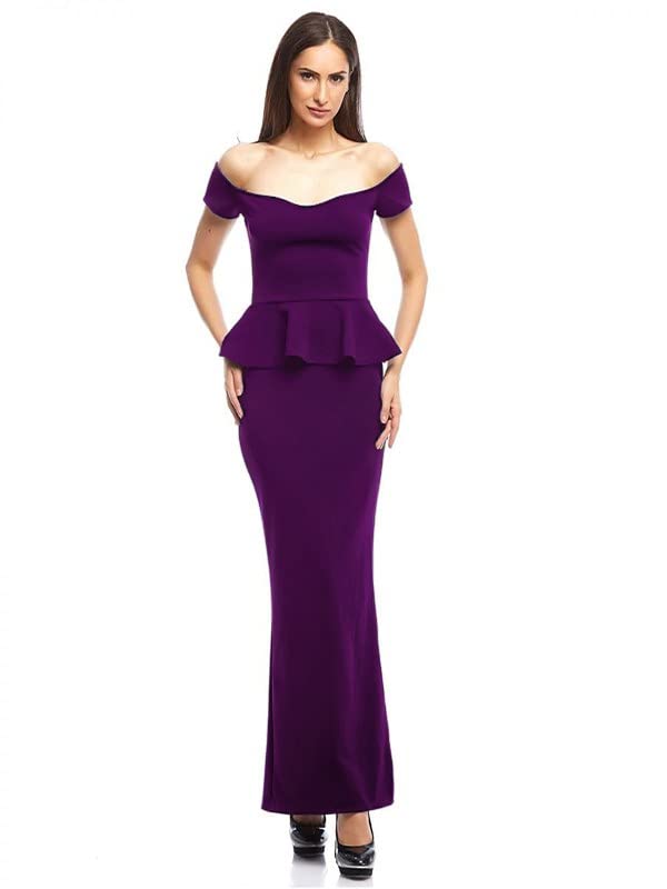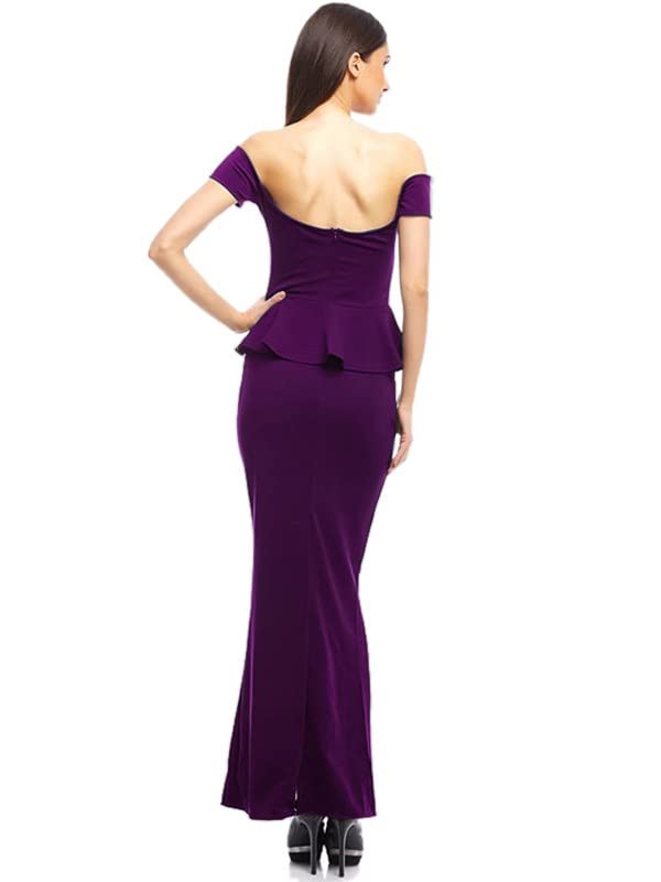 Generic - فستان نسائى بنفسجي طويل بقصة مروحة من الوسط