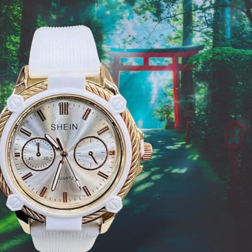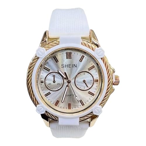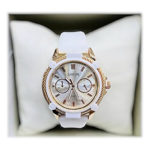 Generic - ساعة نسائية كوارتز، حزام أبيض، إطار ذهبي، مينا فضي، كرونوغراف