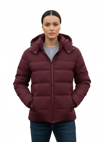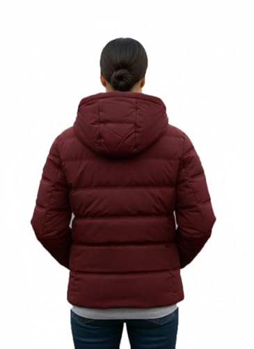 Generic - جاكيت منفوخ مبطن للنساء، بورغندي، معطف شتوي مع سحاب امامي