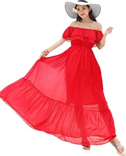 Generic - فستان نسائى أحمر شيفون دون اكمام