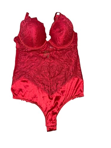 Generic - بودي سوت تيدي دانتيل أحمر للنساء، رقبة عميقة على شكل حرف V، حمالات رفيعة مقاس 85E