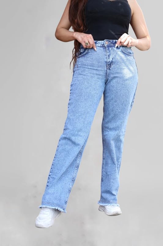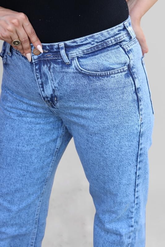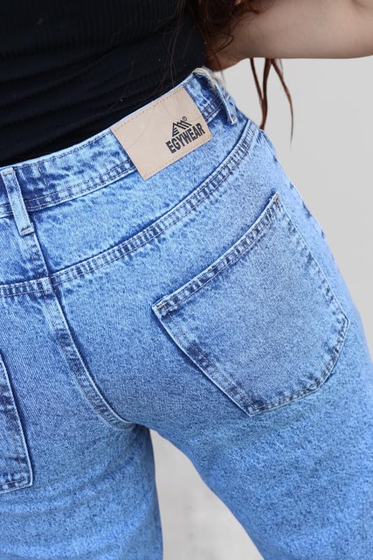 EGYWEAR - بنطلون جينز بقصة عادية للنساء بلون ازرق فاتح