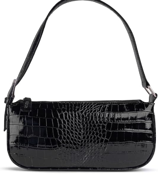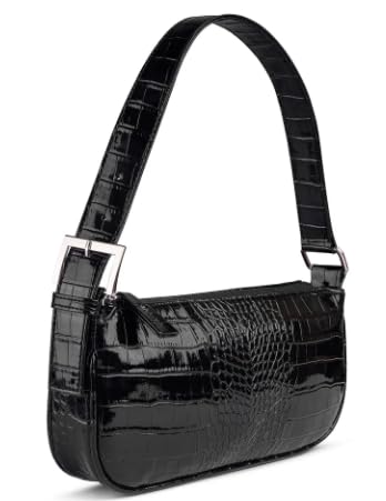 Generic - شنطة كتف بنمط تمساح كلاسيكي للنساء، جلد اسود حاصل على براءة اختراع، نمط باجيت