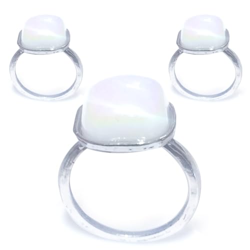 Generic - خاتم حريمي فص مكعب لولي ابيض مقاس حر لون فضي 3 قطعة، للنساء