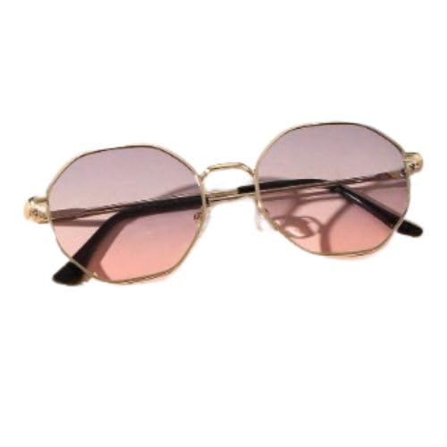 Generic - نظارة شمسية نسائية دائرية باللون الذهبي وعدسة روز ذات أناقة ومتانة عالية - حماية كاملة من الأشعة فوق البنفسجية