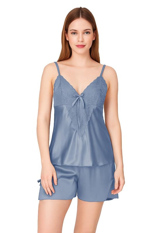 GAMAL SONS FOR ABAYA - قميص نوم نسائي ساتان 2 قطعة قصير، 6 لون، تصميم مثير بحمالات رفيعة GAMAL SONS FOR ABAYA GS-821-51148-Parent