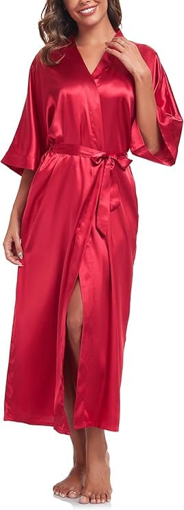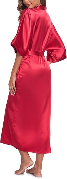 Generic - روب لانجري ساتان طويل باكمام واسعة للنساء باللون الاحمر وان سايز 50:90 كيلوجرام
