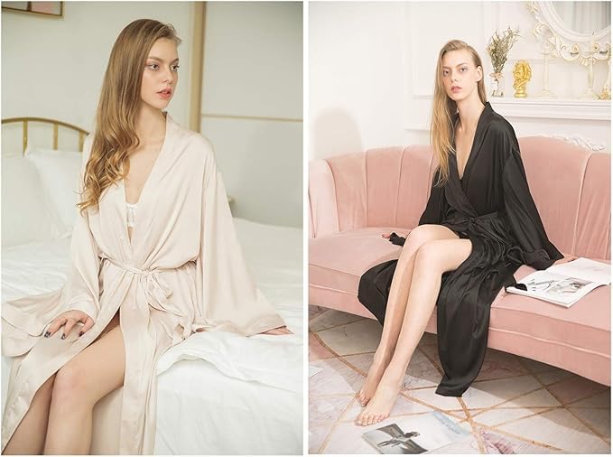 روب لانجري ساتان طويل باكمام واسعة للنساء