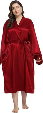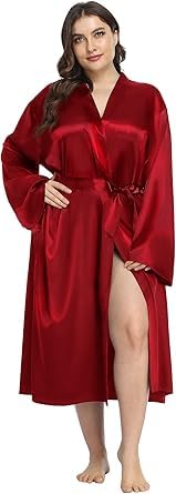 Generic - روب لانجري ساتان طويل باكمام واسعة للنساء باللون النبيتي مقاس خاص من 90 :130 كيلوجرام