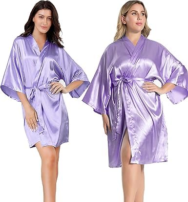 Generic - روب لانجري ساتان قصير باكمام واسعة للنساء بلون لافندر مقاس خاص من 90 :130 كيلوجرام