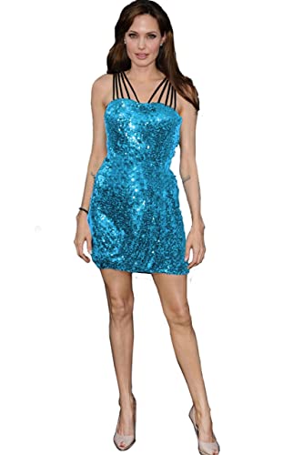 Generic - فستان نسائى قصير سهرة من الترتر ببطانة داخلية لون سماوي