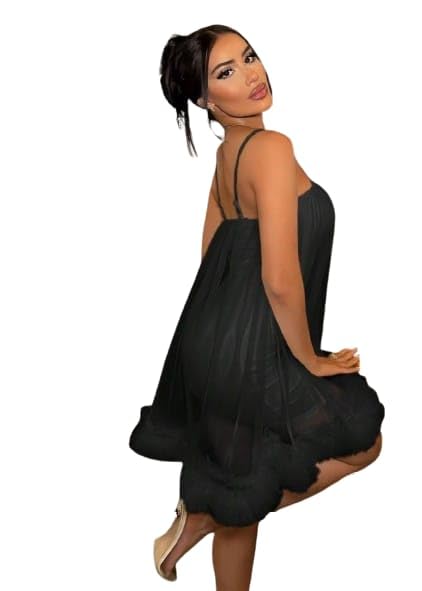 Generic - لانجيري قميص أسود فري سايز مثير للنساء طبقتين