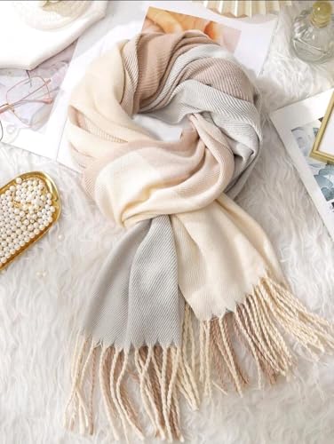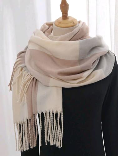 Generic - شال نسائى وشاح دافئ متعدد الألوان بتصميم منقوش مناسب لفصول للخريف والشتاء