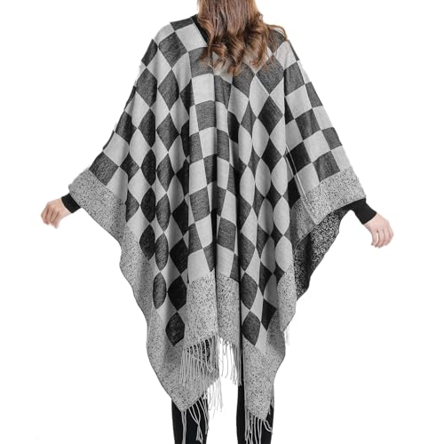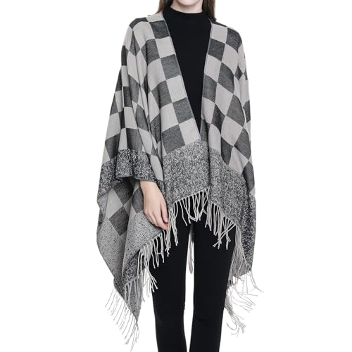 Azonee - سترة كارديجان بونشو ملفوفة خفيفة الوزن ومفتوحة من الامام مع شراشيب للخريف والشتاء للنساء