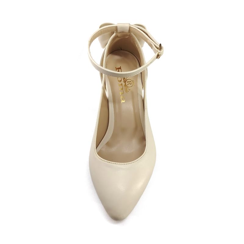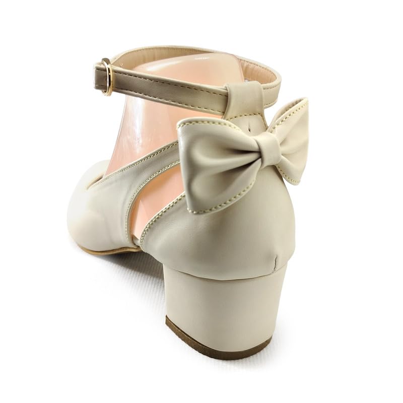 Generic - حذاء للنساء مع فيونكة خلفية وابزيم بحزام للكاحل وكعب بعرض 3 سم