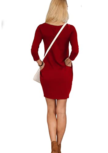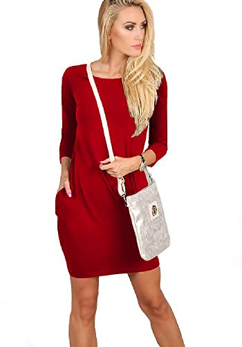 Generic - فستان نسائى قصير بجيوب لون احمر