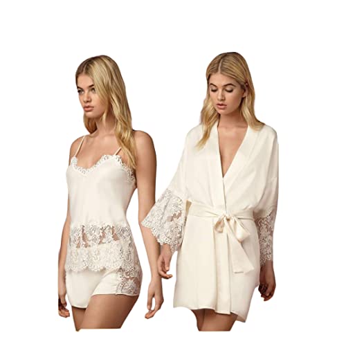 Generic - طقم بيجامة مع روب قصير للنساء مقاس واحد لون اوف وايت, أوف وايت (اليشم الباهت), One Size