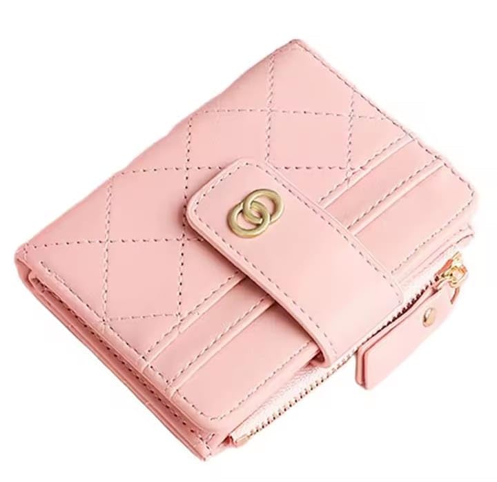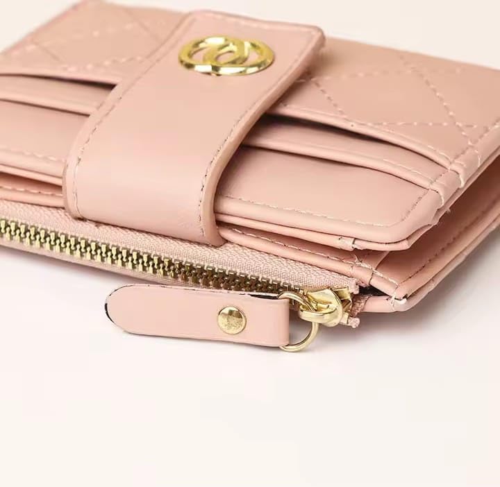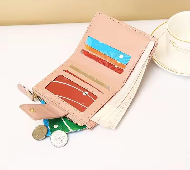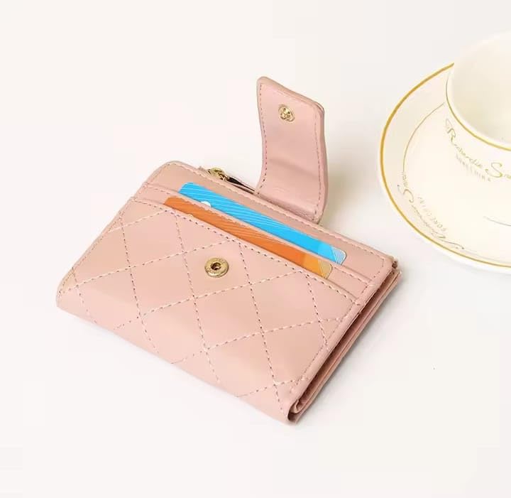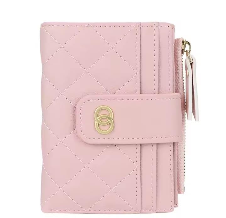 Generic - محفظة نسائية قصيرة بسحاب، محفظة رفيعة ثنائية الطي من جلد البولي يوريثين مع نافذة لبطاقة الهوية، محفظة صغيرة للسيدات للعملات المعدنية - بينك
