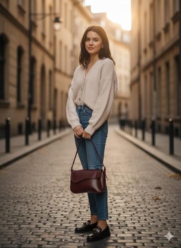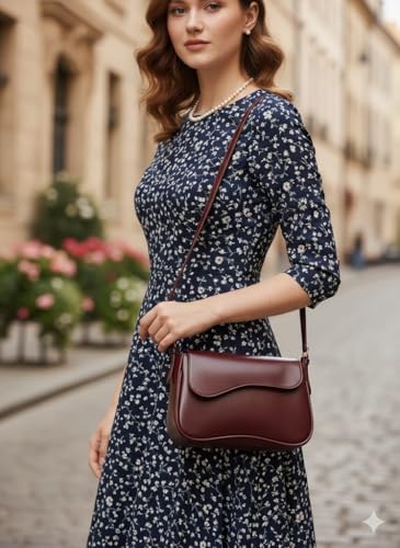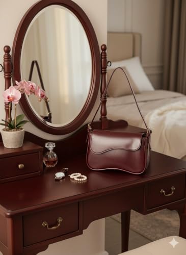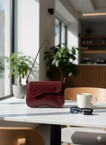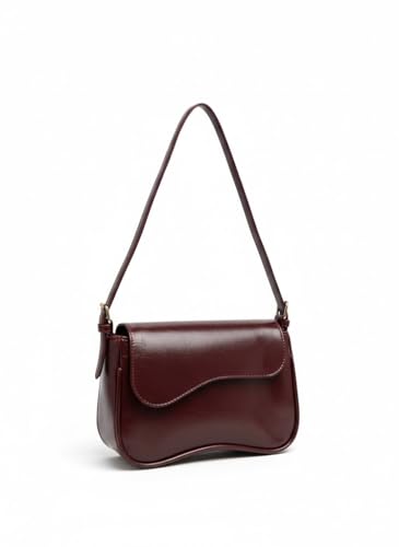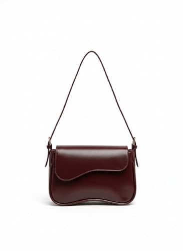 حقيبة كتف نسائية عصرية بتصميم هندسي متموج، شنطة يد من الجلد الناعم بمقبض علوي وشكل كلاسيكي، مناسبة للعمل والمناسبات - ألوان بيج ونبيتي
